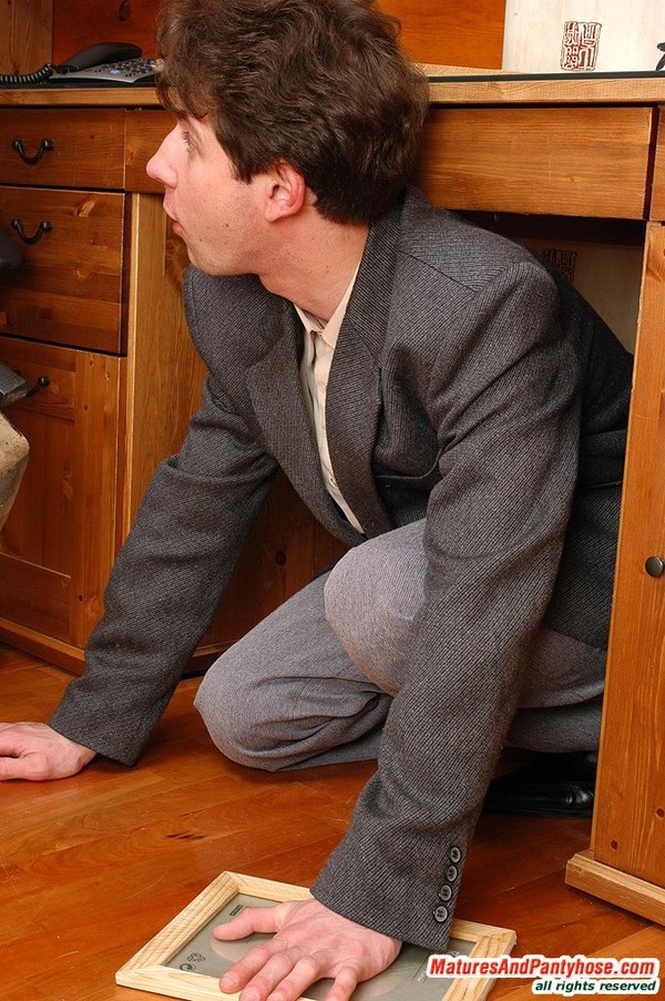 Redhead mature chick seducing her co-worker into outrageous pantyhose sex